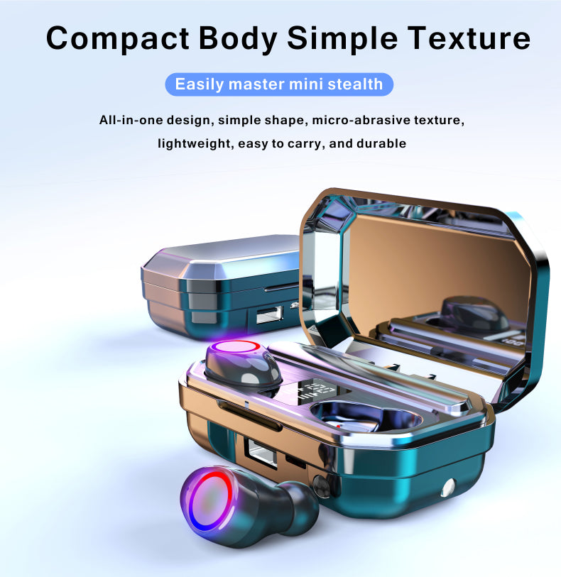 Home Headphones TE03 Wireless earbuds, 2000mAh TWS earphone earbuds, can charge cell phones.